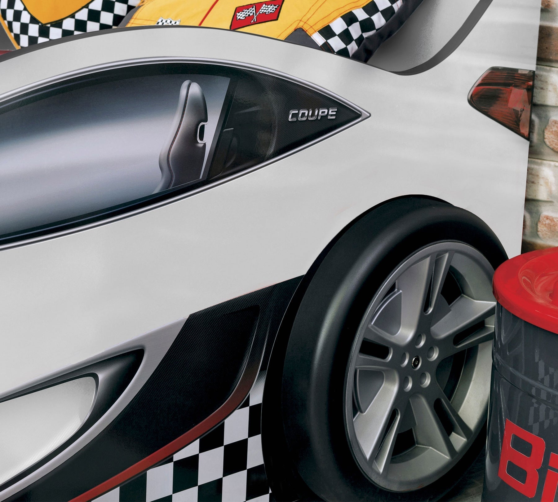 Grazie alle dimensioni 90x190 cm e alla struttura robusta, il letto è pensato per essere utilizzato a lungo. I dettagli come le ruote tridimensionali, gli adesivi a scacchi e la parte superiore rialzata che funge anche da testiera rendono l’aspetto particolarmente realistico.