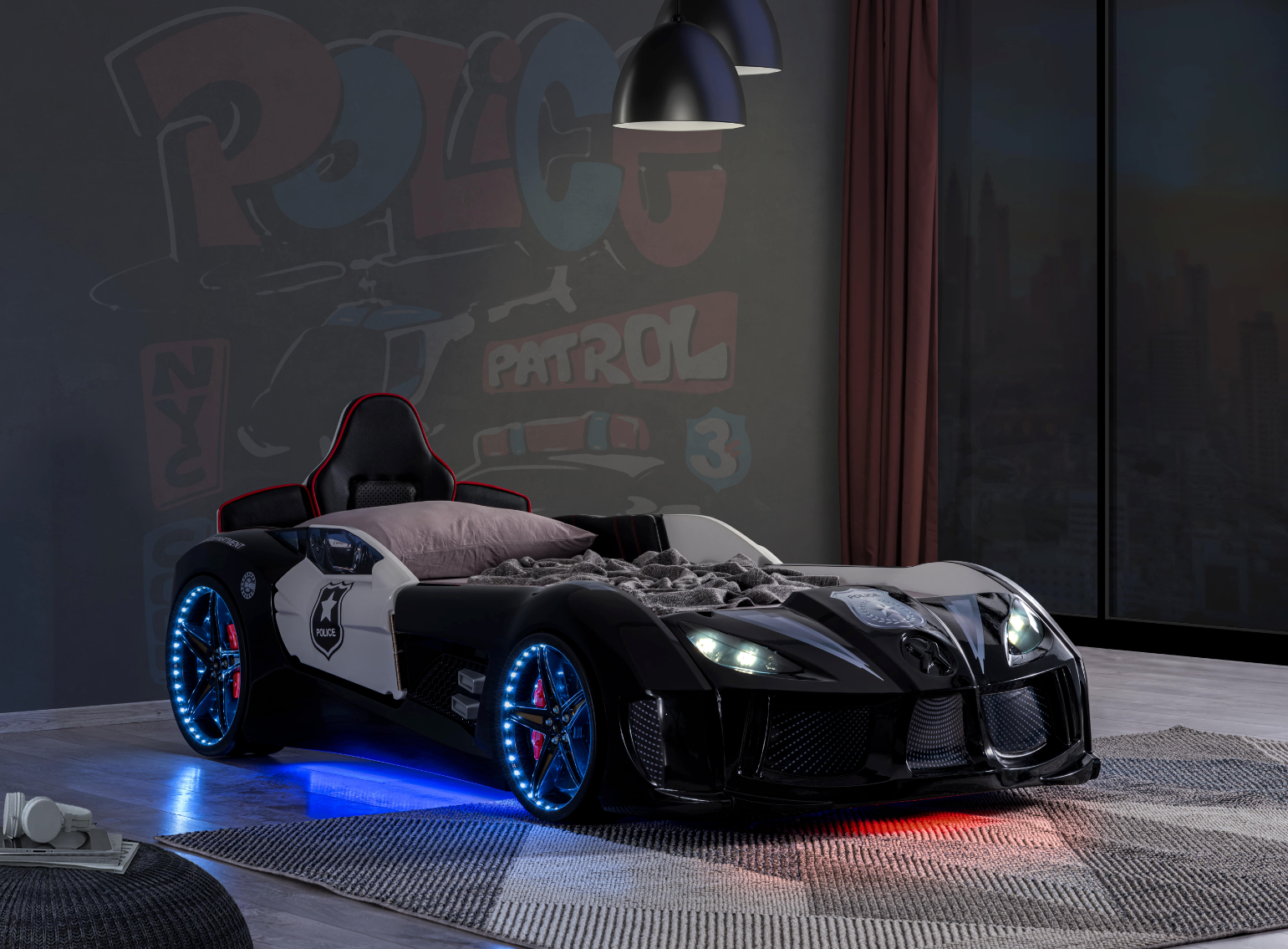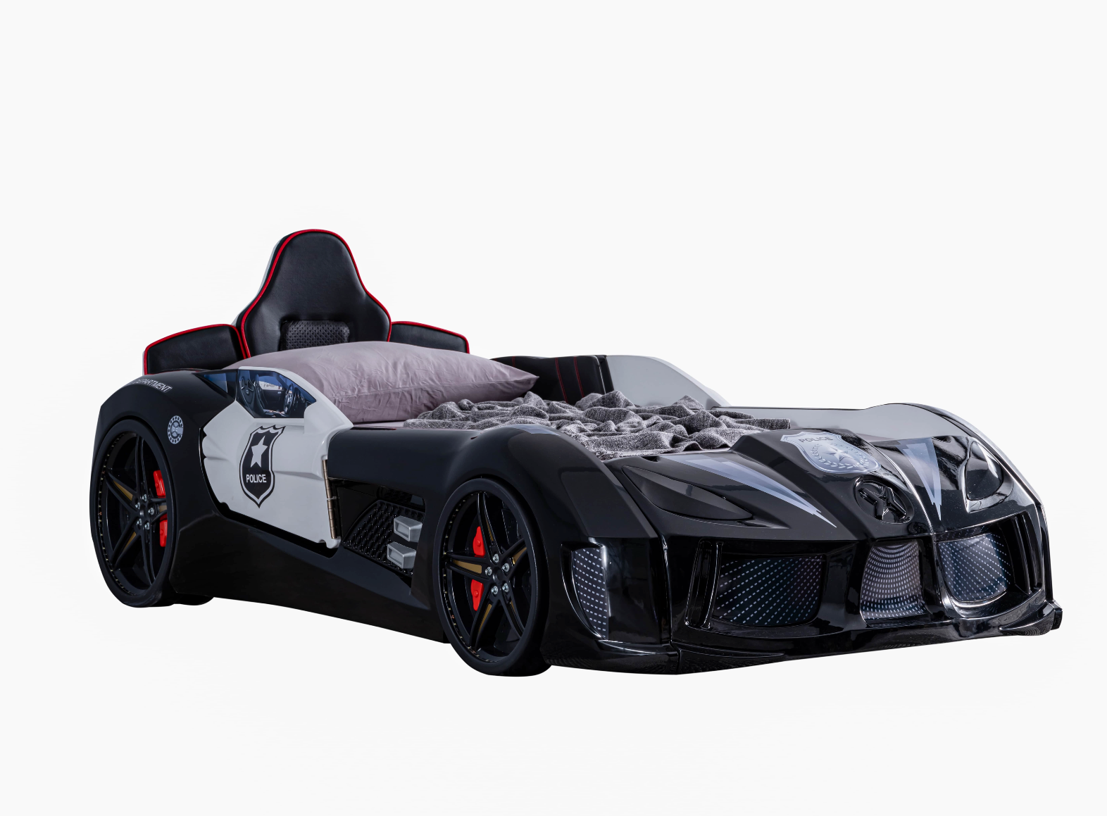 MVN 3 Letto Auto Police è progettato per trasformare la cameretta in una vera scena d’azione! Con il suo design ispirato alle auto della polizia, sedile rivestito in ecopelle, sirene luminose e effetti sonori, questo letto offre ai bambini un’esperienza unica, divertente e sicura.
